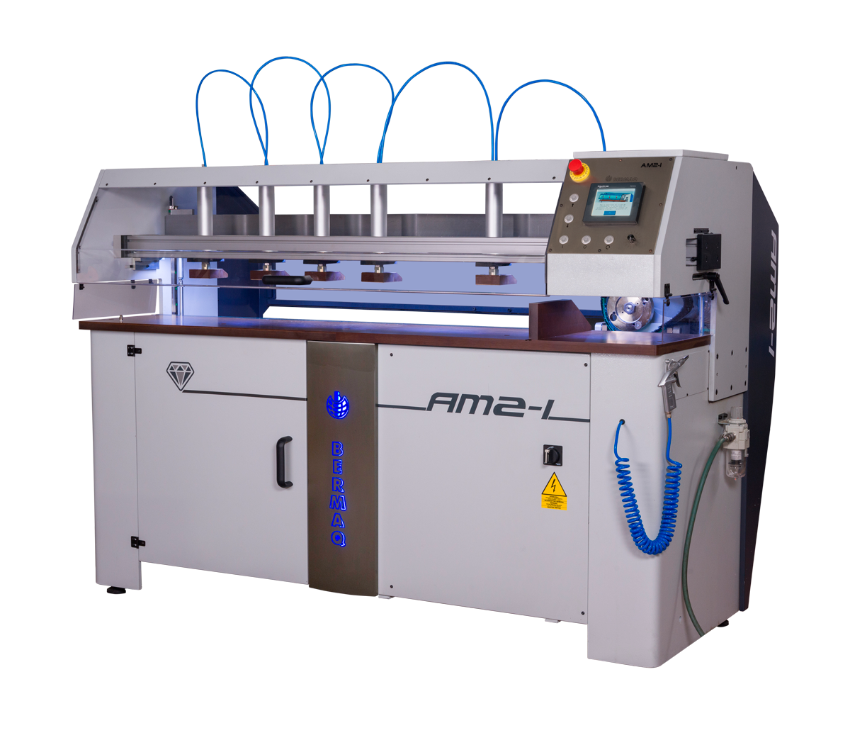 La màquina ve equipada amb un sistema d'aspiració d'encenalls i un joc d'eines de diamant per a cort i acabat, proporcionant a l'usuari tot el necessari per a obtenir resultats òptims des del primer ús. L'AM2-I és una màquina fabricada exclusivament per BERMAQ, amb un minuciós control de qualitat en cada etapa de producció, i tots els components provenen de la UE i compten amb el segell CE, garantint un producte d'alta qualitat i seguretat.