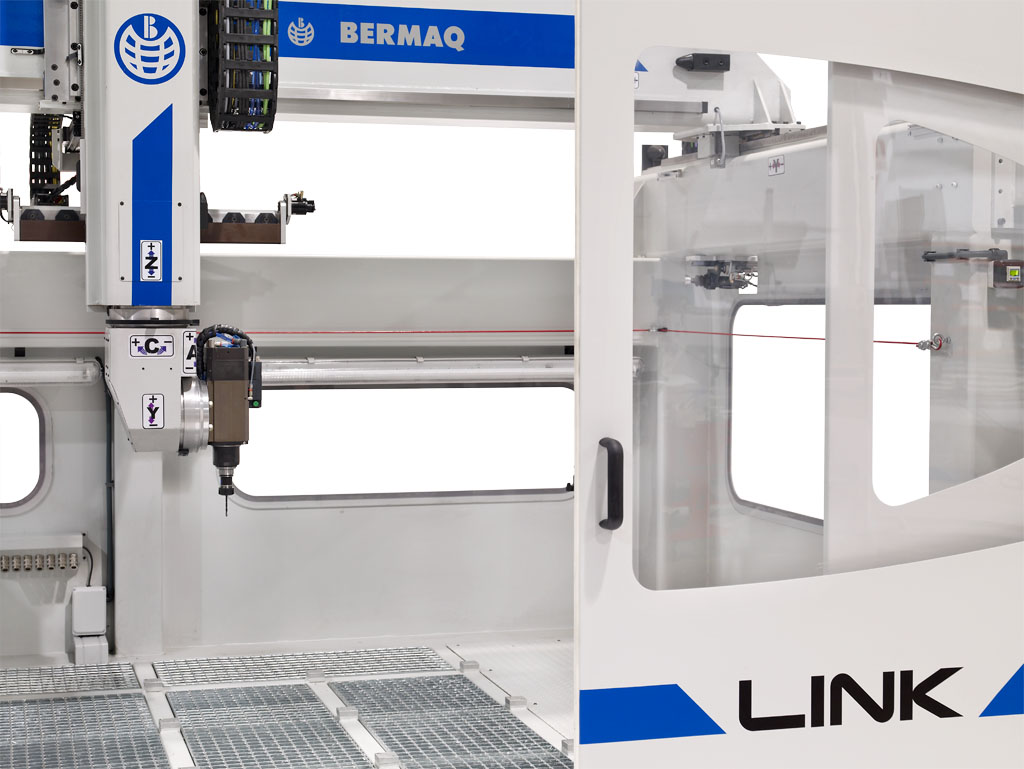 The BERMAQ LINK machine is primarily designed for machining large-format parts, specifically aimed at industries such as aerospace, automotive, and mold and die manufacturing. LINK stands out for its ability to perform 3D work and its high precision in milling and cutting complex materials.