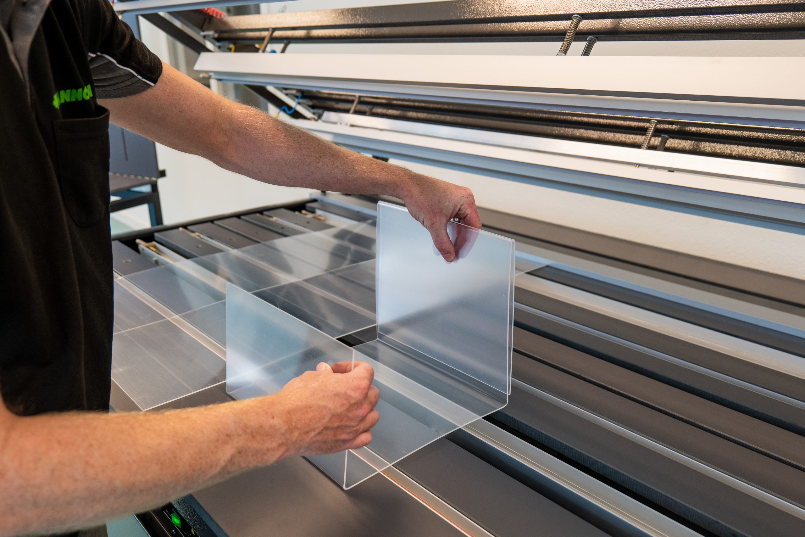 Màquines doblegadores de làmines acríliques professionals amb subescalfament, compostes per perfils fàcilment ajustables amb fils calefactors.